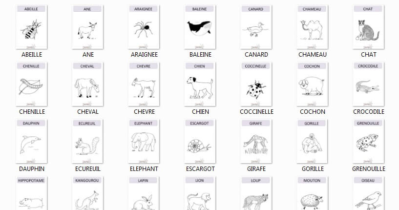 رسومات للحيوانات مع الاسماء بالفرنسية معدة للتلوين