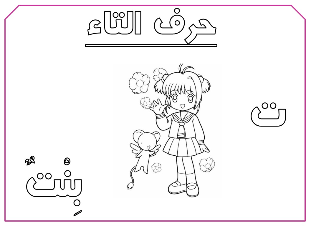 كلمات بحرف التاء بالصور مناسبة للاطفال مع تلوين حرف التاء