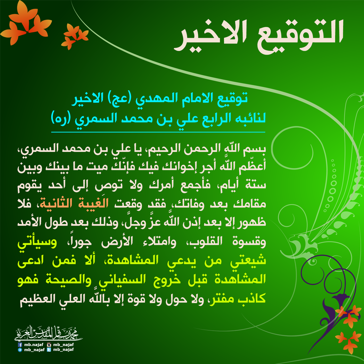 تصاميم الشيعة التوقيع الأخير للإمام المهدي عجل الله فرجه
